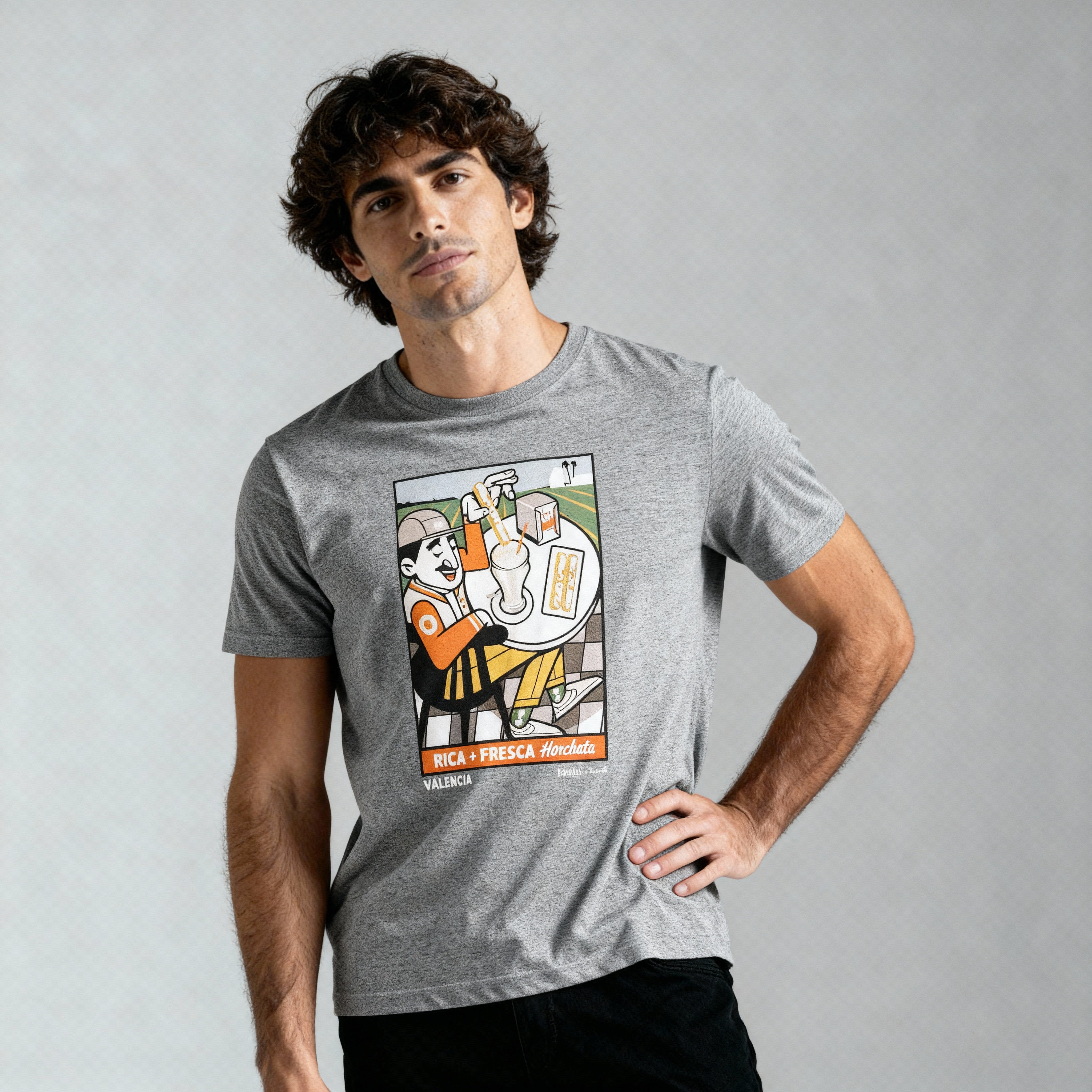 Una camiseta cómoda, ligera y con mucha personalidad. Ideal para quienes no pueden resistirse a la horchata y quieren llevar Valencia en el pecho.