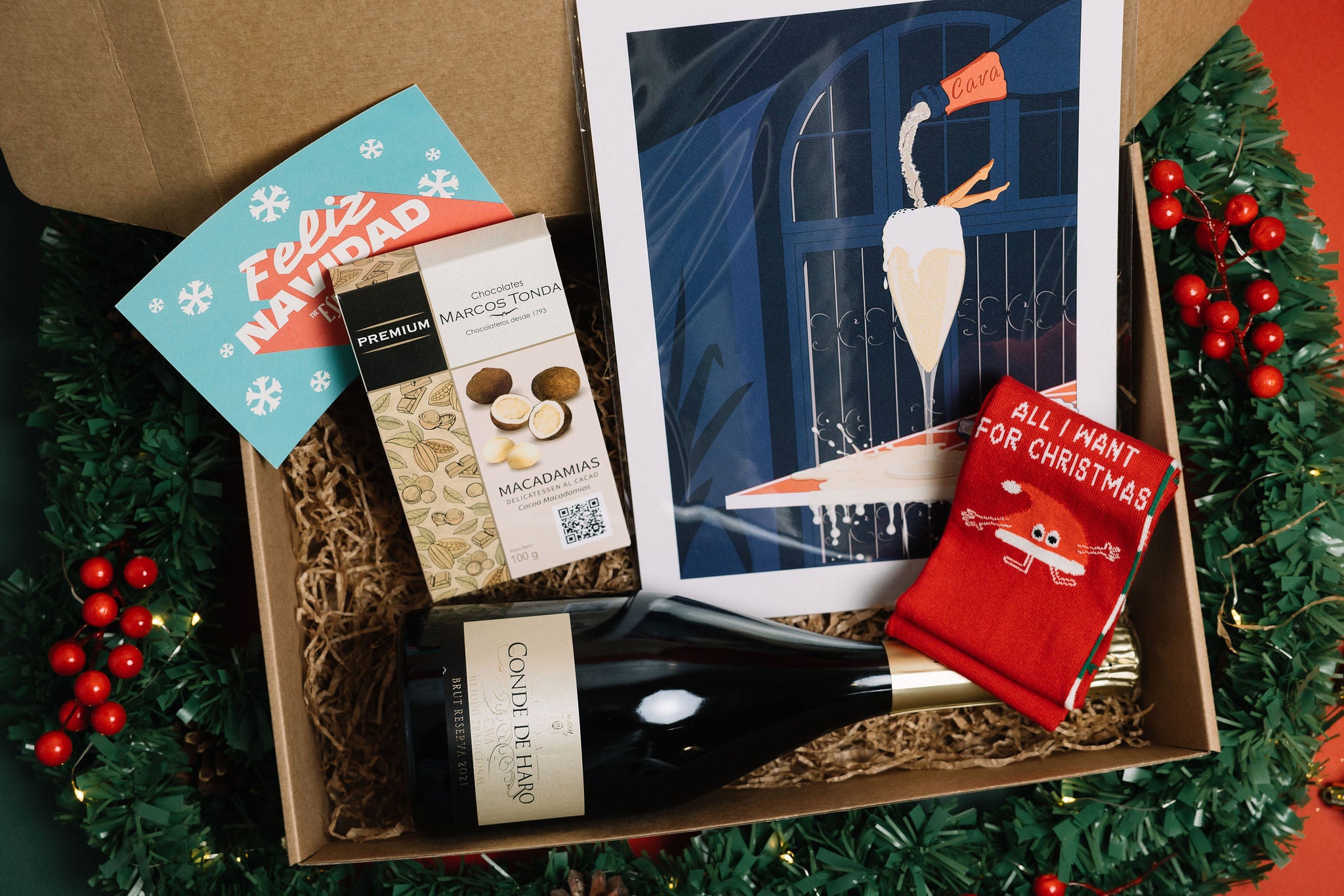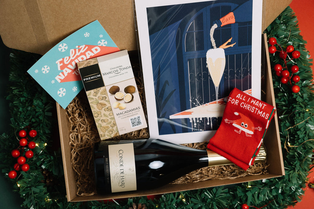 Este pack combina uno de los cavas más reconocidos del país con una selección de delicias artesanales y una ilustración exclusiva, creando un regalo completo y listo para sorprender.