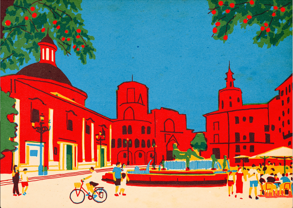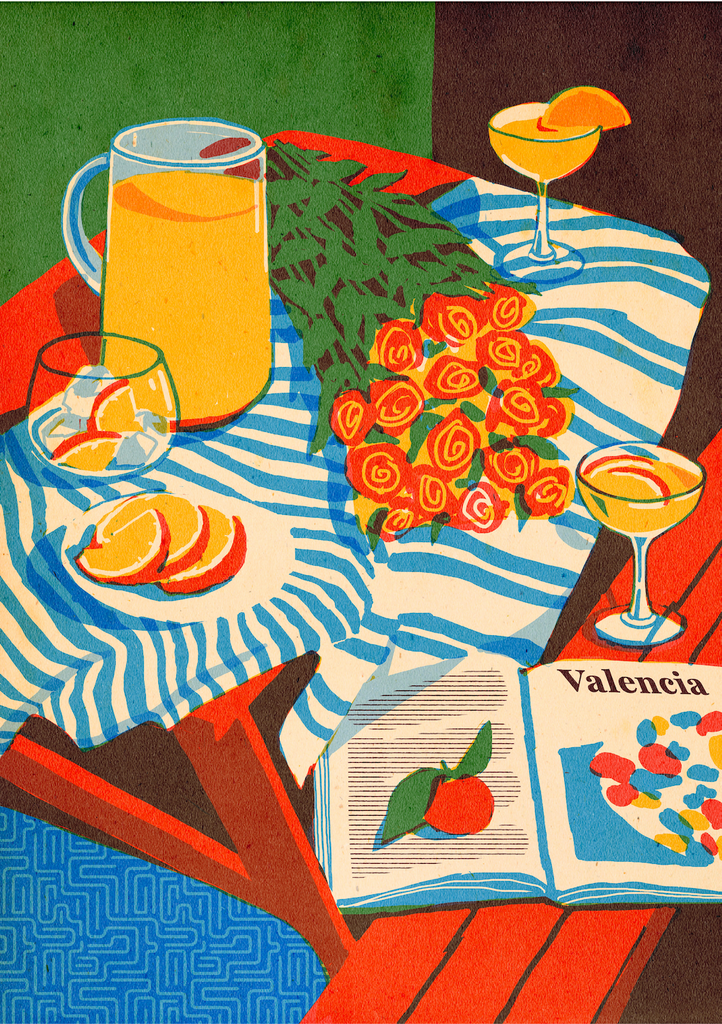 Sus ilustraciones, llenas de color y vida, capturan escenas que nos hacen sonreír: una mesa compartida, una conversación, un momento de calma.